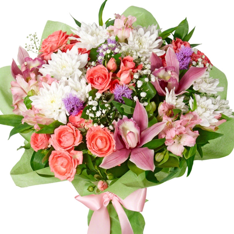 Альстромерия, Гипсофила, Орхидея, Роза кустовая, Хризантема |