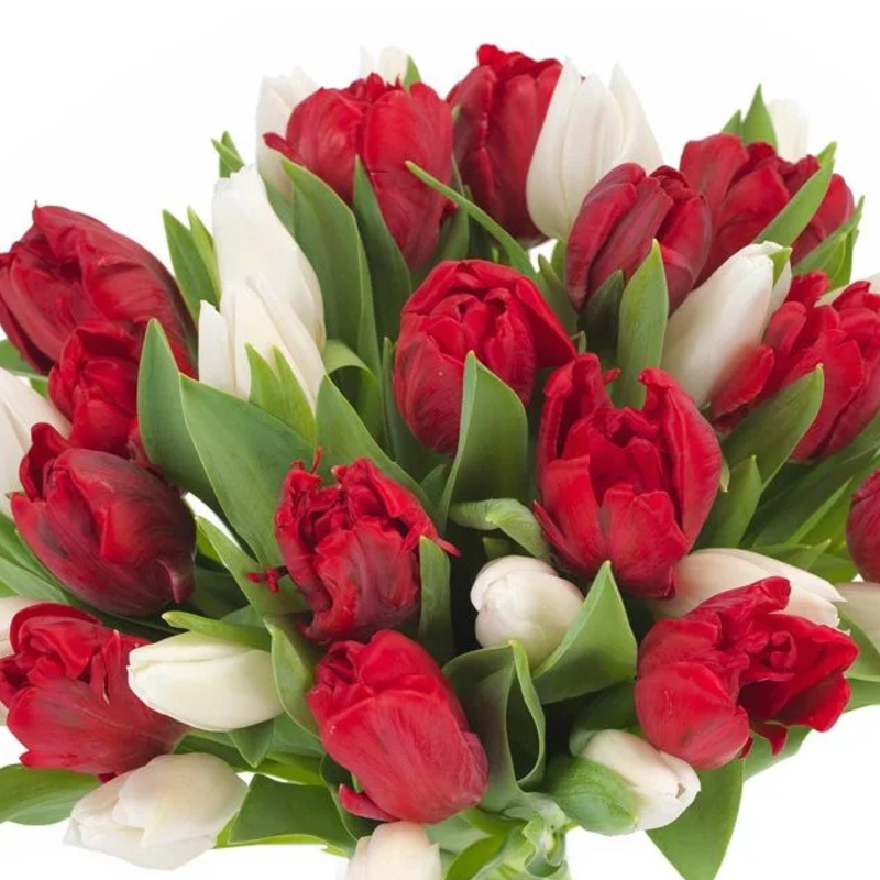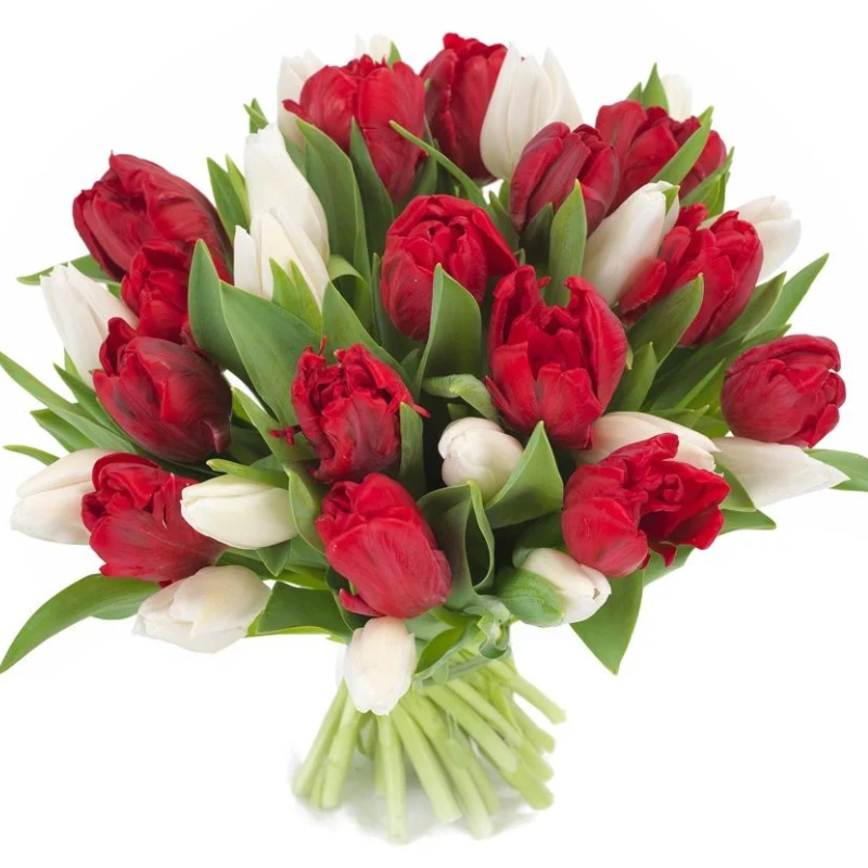 Букет из 35 красных и белых тюльпанов