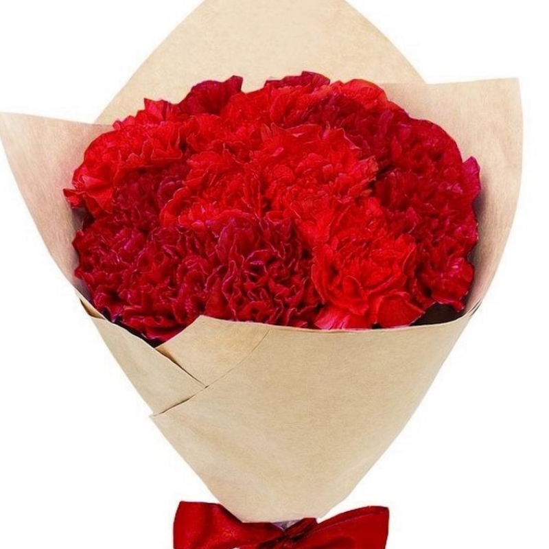 Букет из 15 красных гвоздик в крафте