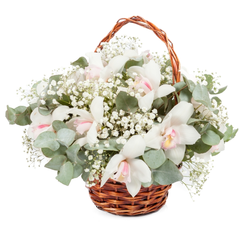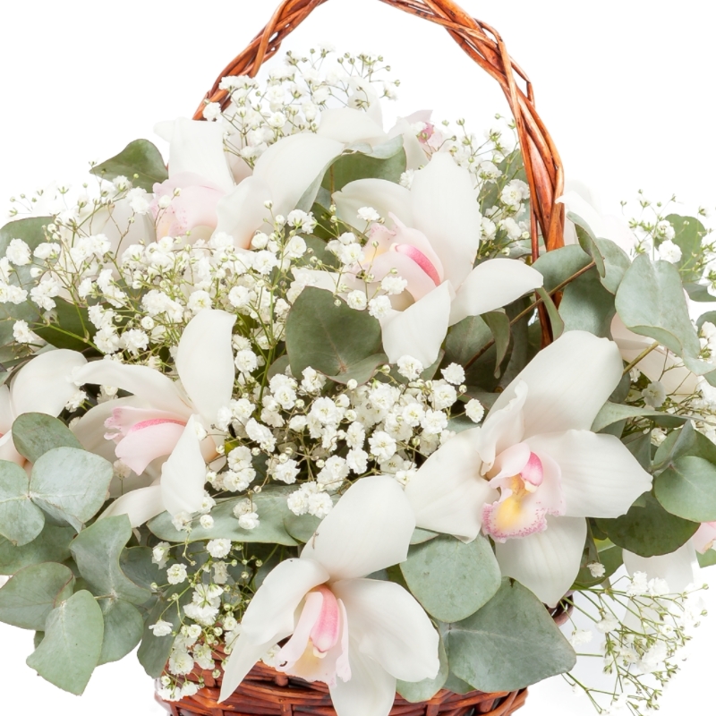 Букет из орхидей с гипсофилой в корзине