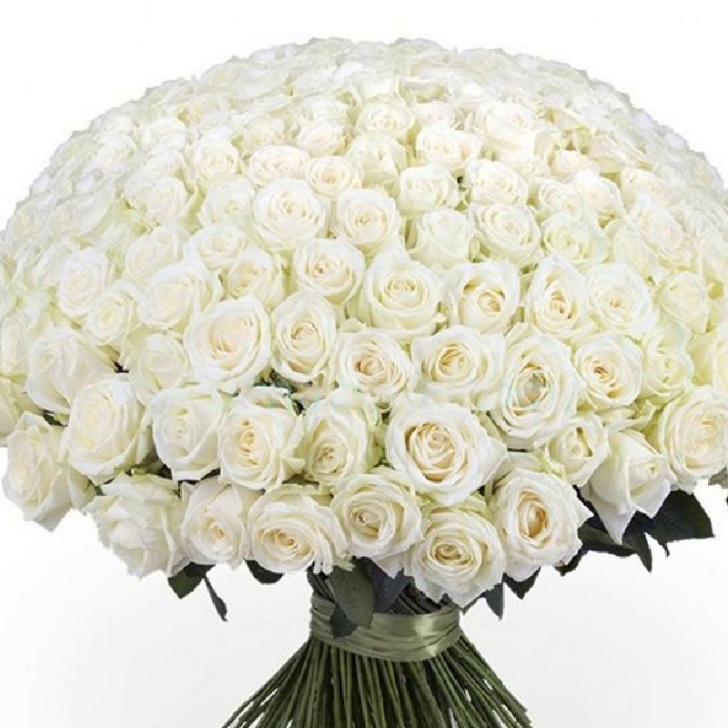 Букет состоит из 201 белая роза, прозрачная упаковка, атласная лента.