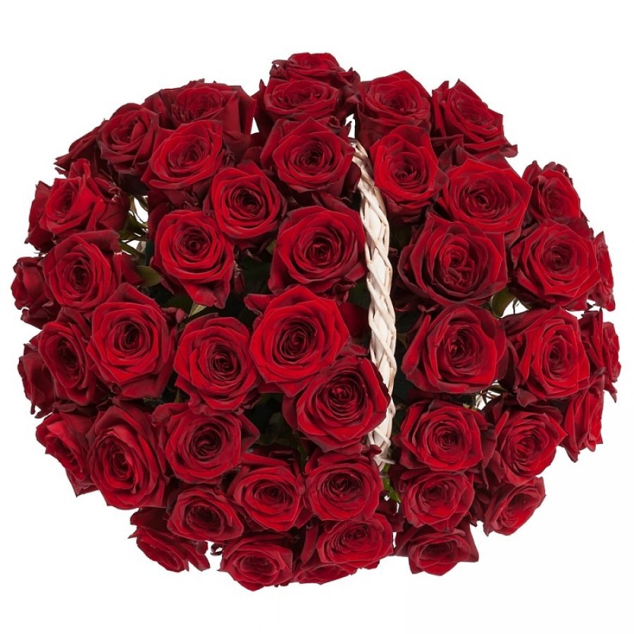 Букет состоит из 51 красная роза, корзина.