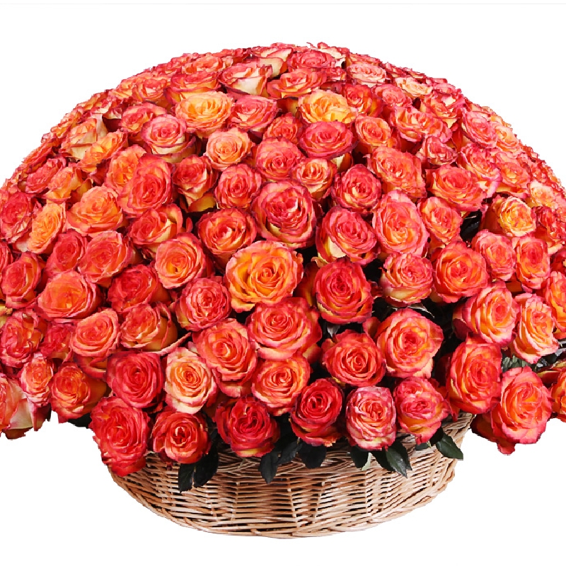 Букет состоит из 201 роза High Magic, зелень, корзина, оазис.