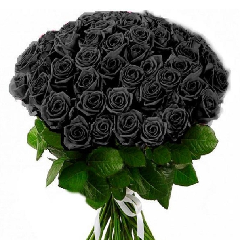 Букет состоит из 51 черная роза, прозрачная упаковка, атласная лента.