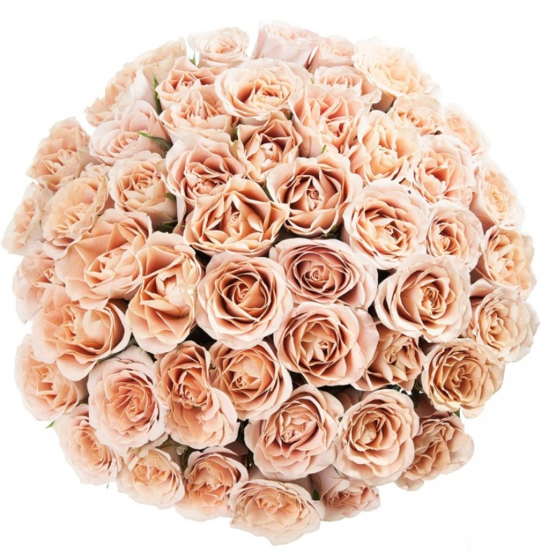 Букет состоит из 55 кремовых роз, прозрачная упаковка, атласная лента.