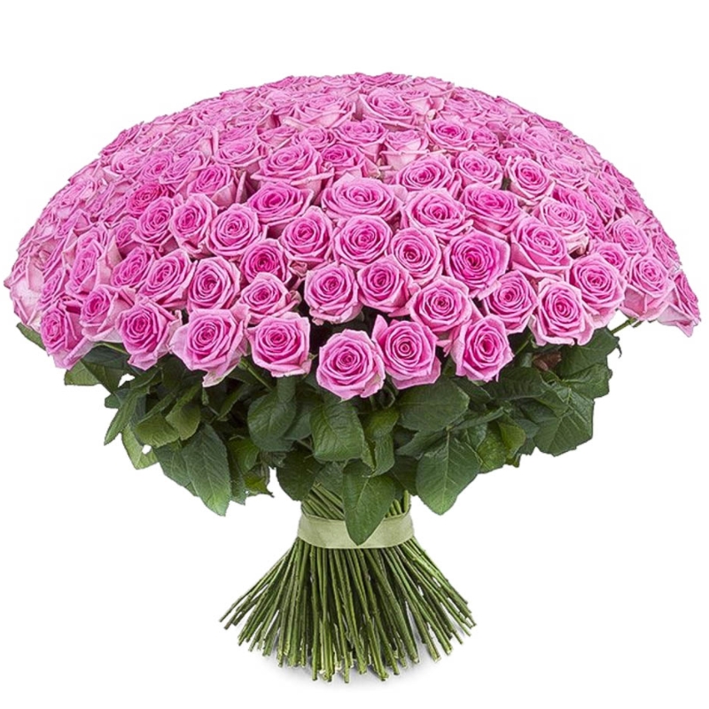 Букет состоит из 201 розовая роза, прозрачная упаковка, атласная лента.