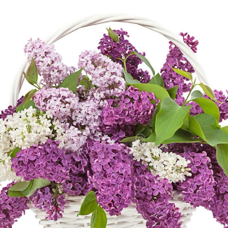 Букет из 15 веток сирени в корзине